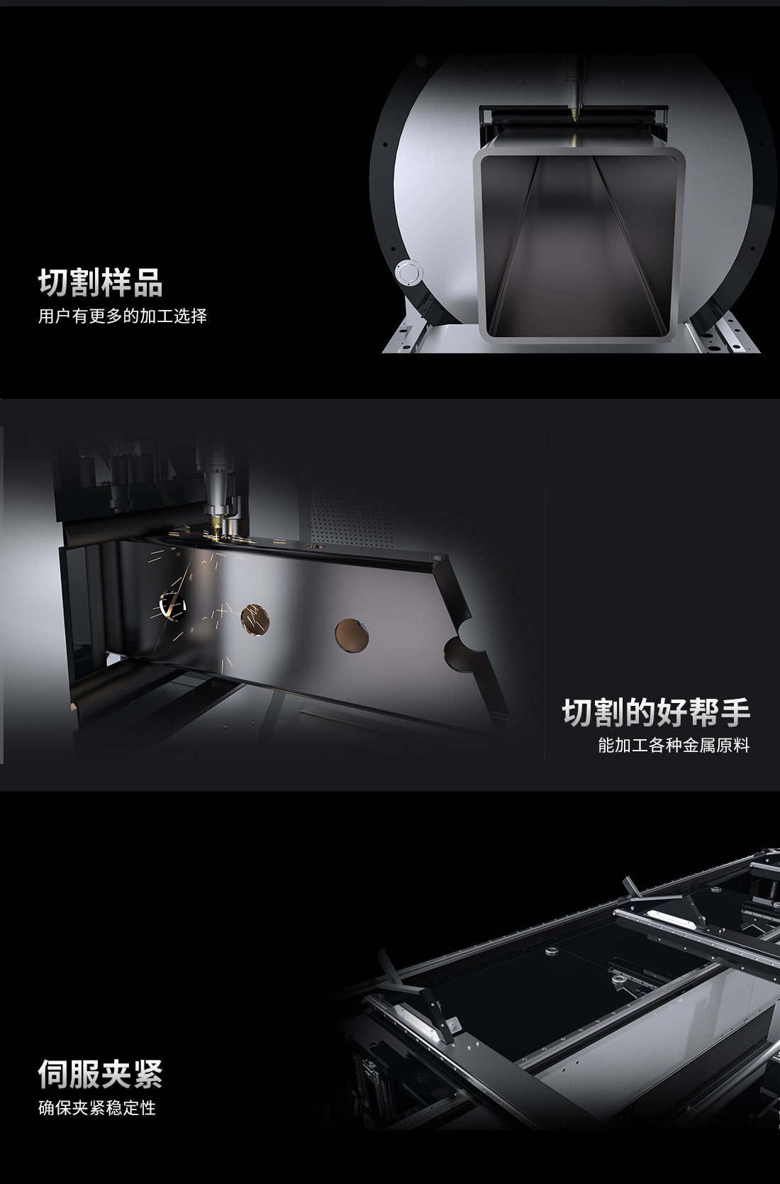 管材激光切割機T2406A是針對管材切割市場的一款產品,具有隨動支撐、自動對中、隨動下料壓力實時檢測等功能,采用全行程雙動氣動卡盤、總線控制系統,智能、高效穩定,該產品可滿足圓管.方管、矩形管、橢園管等多種管材型材的切割,可應用于建筑、食品、裝飾、廣告、體育用品等行業,應用范圍廣、自動化程度高、切割效果好。